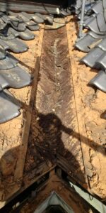 瓦の高さ調整、防水用に南蛮漆喰をのせ、瓦を戻します。